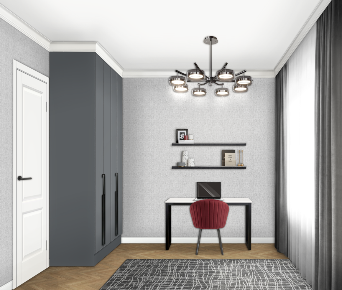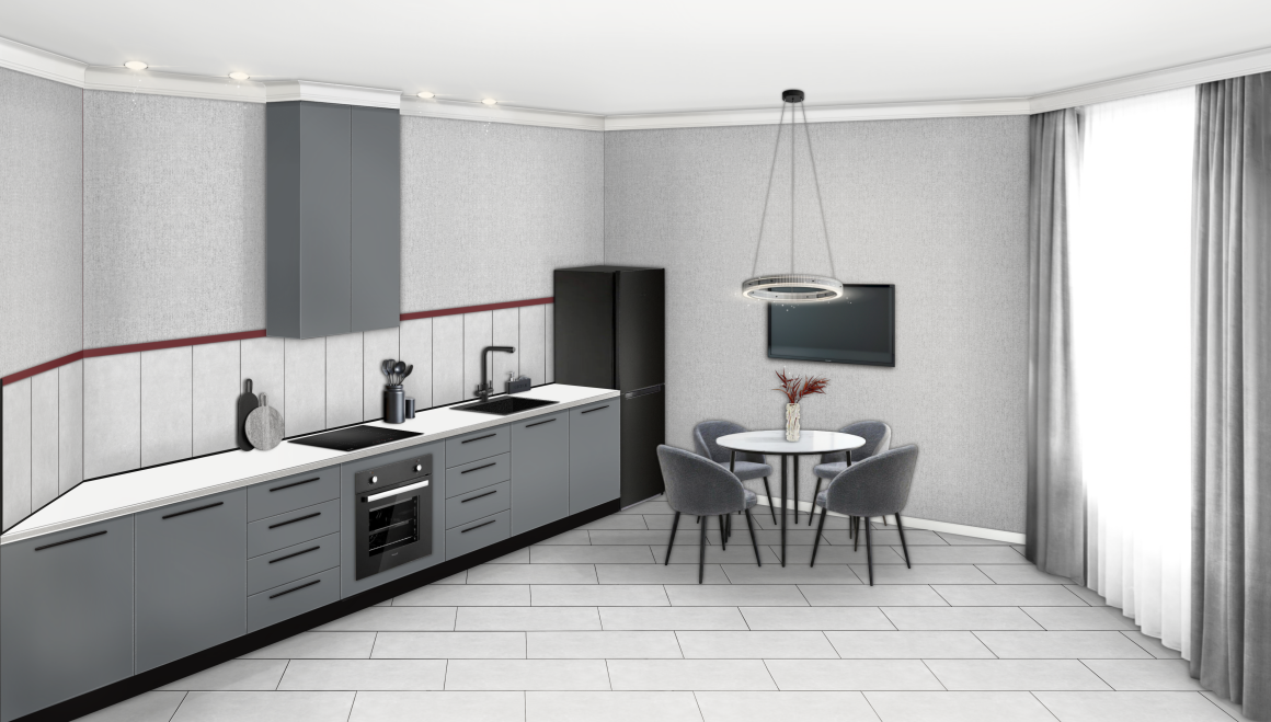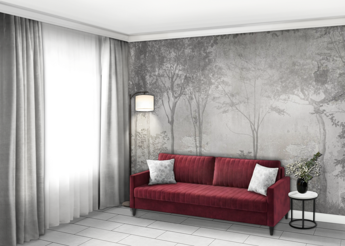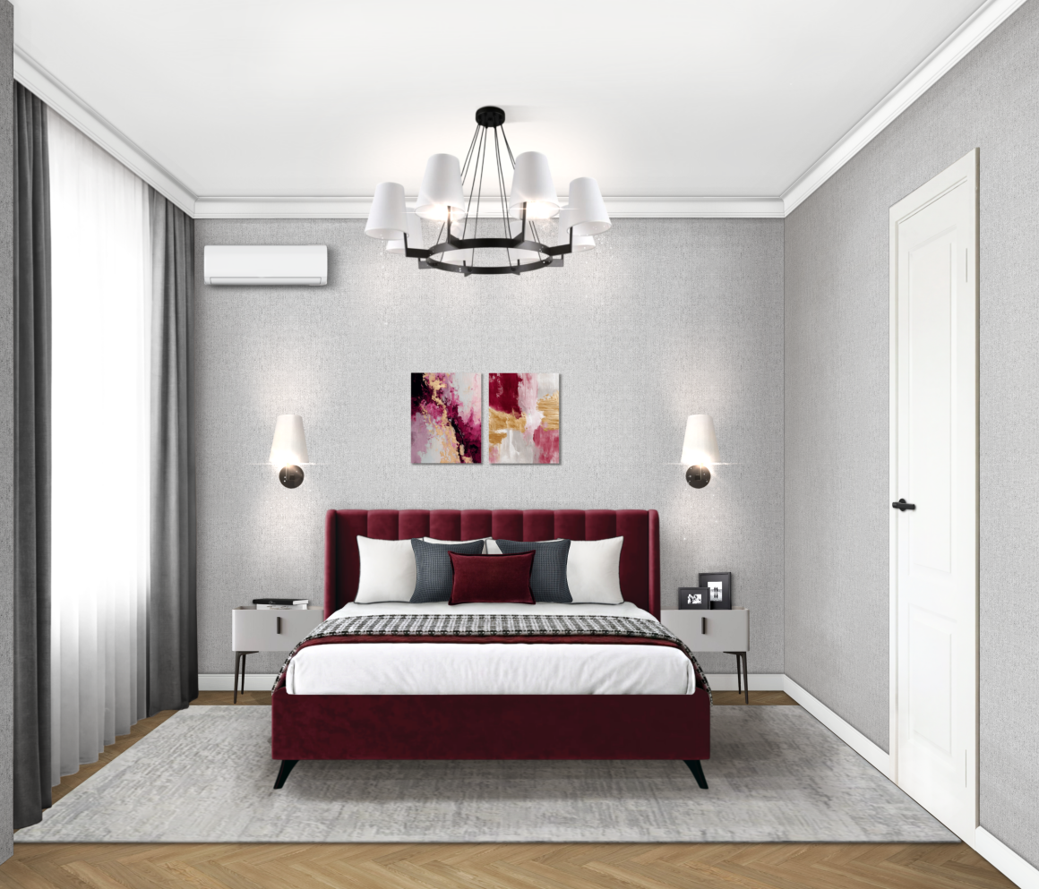 Колористика – серые тона с яркими бордовыми акцентами