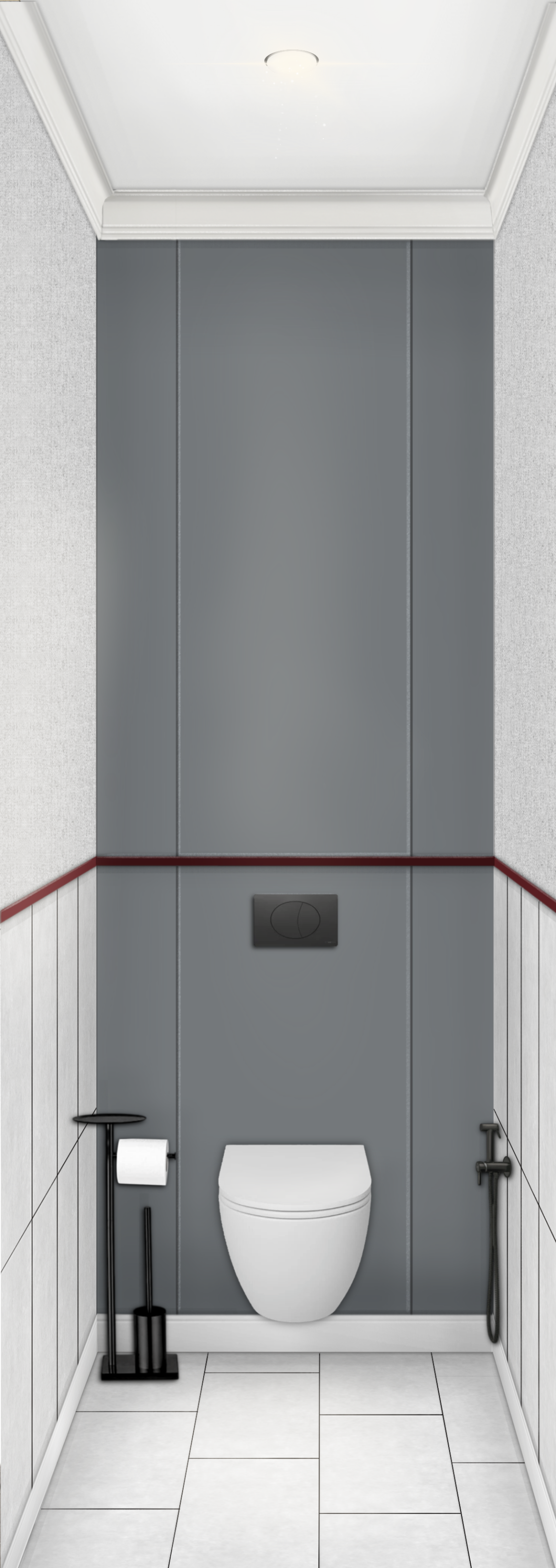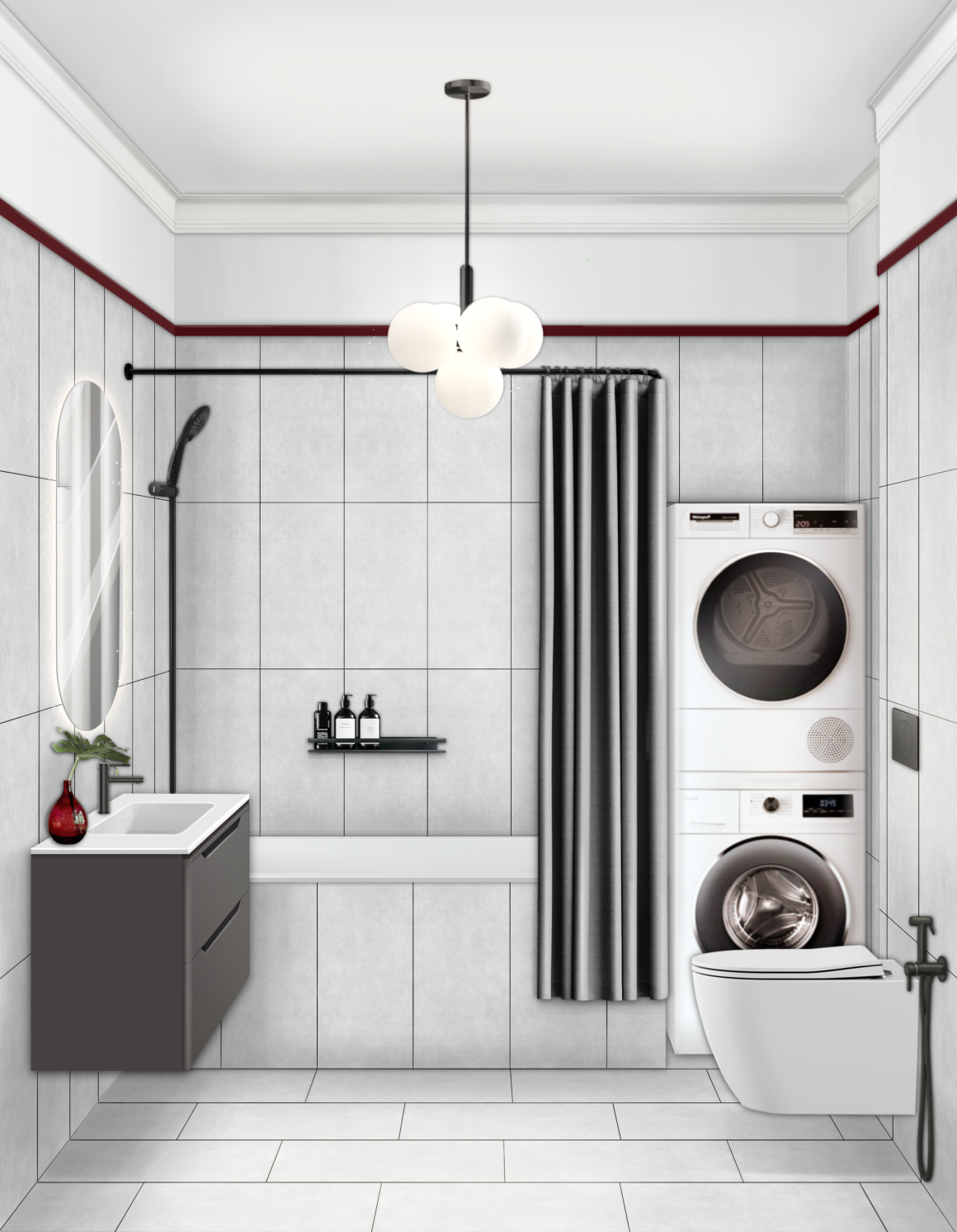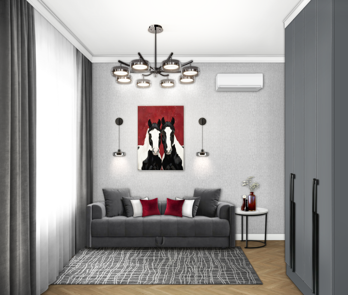 Колористика – серые тона с яркими бордовыми акцентами